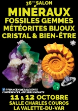 Exposition-Vente de Minéraux, Fossiles, Météorites, Gemmes, Cristal & Bien-Être et Bijoux de Créateurs à la salle Charles Couros de La Valette-du-Var.