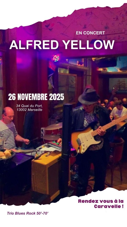 Sur la route du blues, ils ont côtoyé Robert Johnson et Eric Clapton, le King et Chuck Berry puis ils ont bu quelques bières en compagnie des Doors, bourlingué avec Johnny Cash et rencontré Joe Cocker… Alfred Yellow en trio (guitare-chant, contrebasse, clavier) c’est un voyage dans l’esprit du blues et du rock des 50’s aux 70’s…