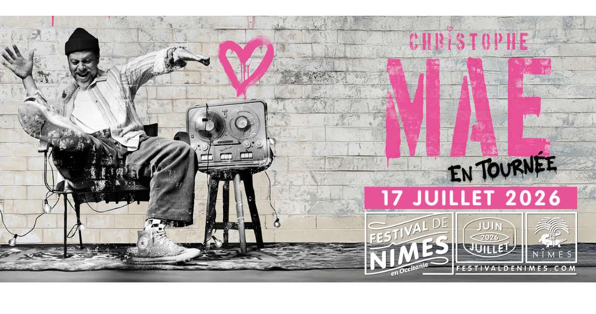 Après une dernière tournée triomphale, Christophe Maé revient sur la scène mythique des Arènes de Nîmes pour un concert exceptionnel le vendredi 17 juillet 2026.