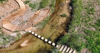- Revitalisation écologique avec la création d’un méandre, l’adoucissement des berges et la plantation de près de 10 000 végétaux,
