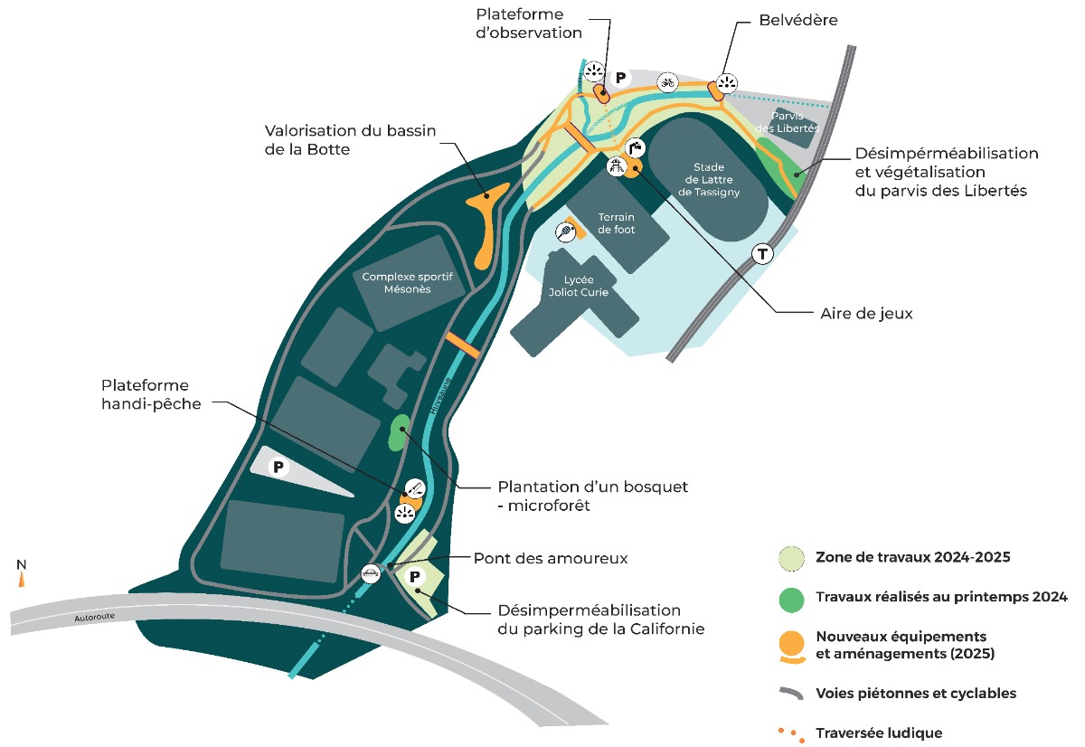 - Création de nouveaux cheminements partagés (piétons et cyclistes), de passerelles et de pas japonais,