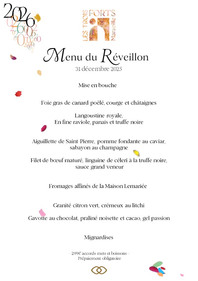 Le restaurant Les Trois Forts propose une soirée gastronomique pour célébrer la nuit de la Saint Sylvestre au sommet du Sofitel Marseille Vieux Port.