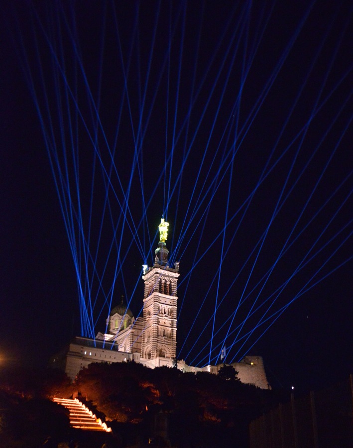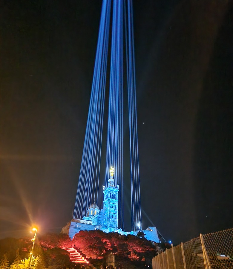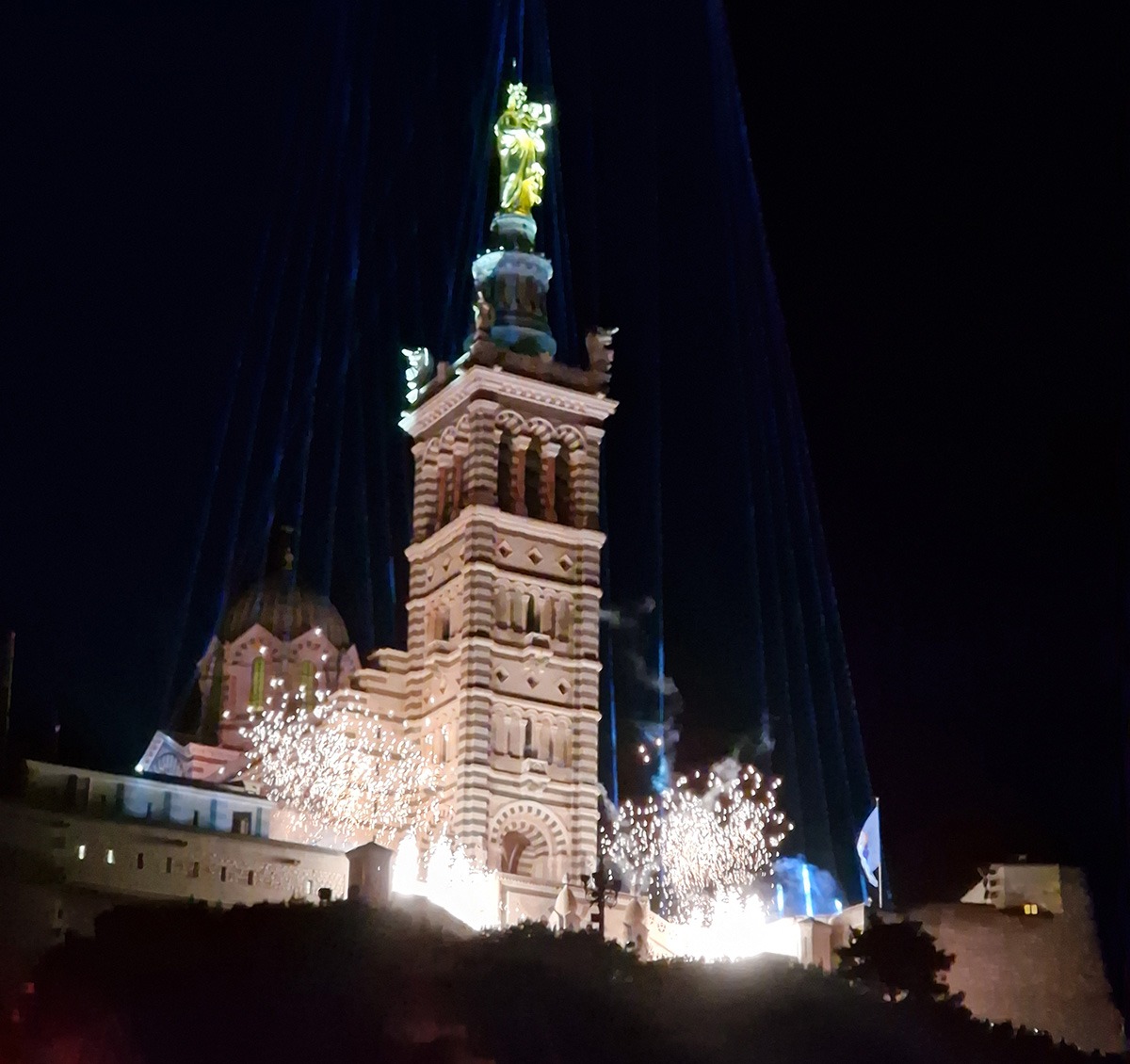 Des milliers de personnes étaient réunies ce dimanche soir au pied de la basilique Notre Dame de la Garde mais aussi sur le Vieux Port, au Pharo et dans de nombreux points de vue permettant de voir la Bonne Mère. Comme annoncé, le spectacle fut court, seulement une douzaine de minutes, mais intense. Notre Dame de la Garde appartient à tous les Marseillais et c'est une fierté collective que de voir cet édifice protégé et rénové durant ces travaux.