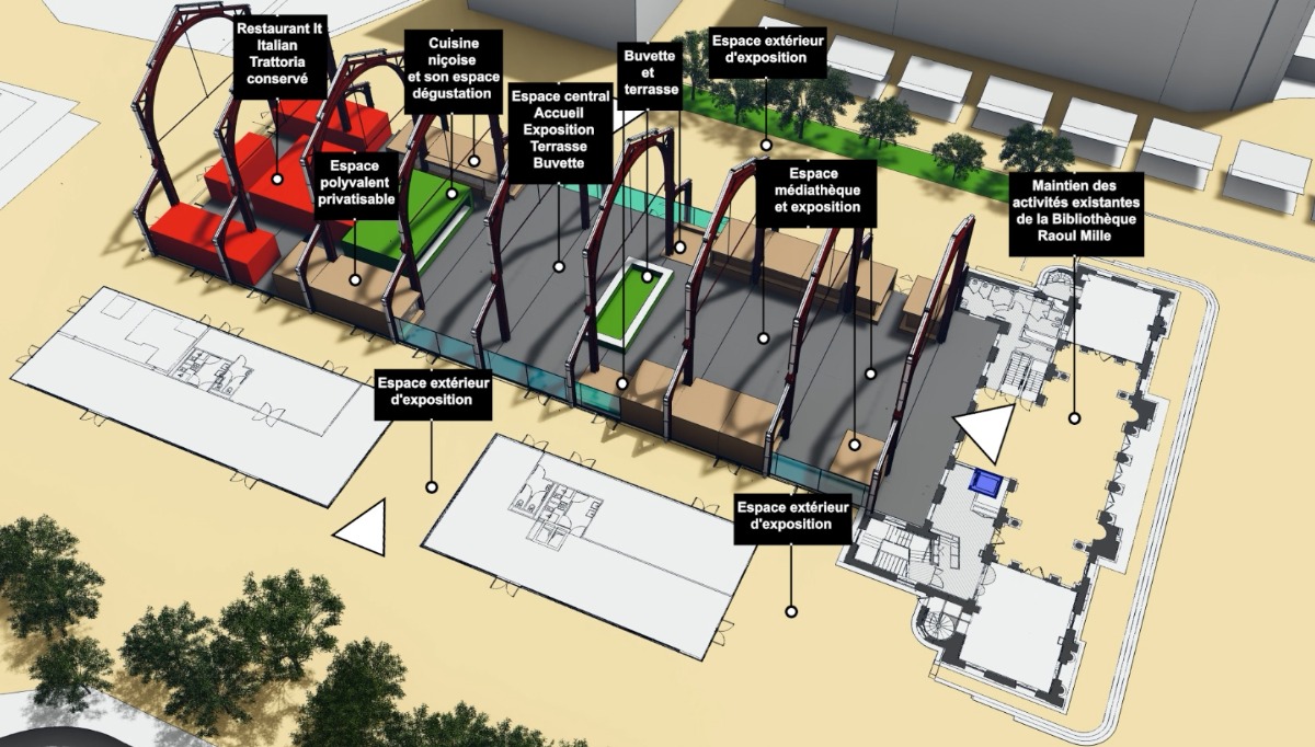 Néanmoins, le restaurant IT Italien Trattoria, installé sur une surface de 300m² est conservé au bout du bâtiment, et un espace dédié à la cuisine niçoise va être aménagé ainsi qu’un « café central » au milieu de l’ancienne gare.