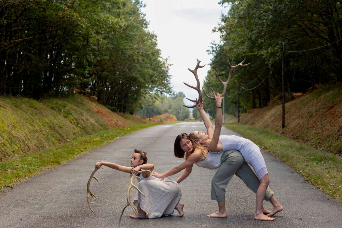 De tout temps, le cerf a passionné les hommes par sa majesté et sa puissance. Gracieux et indomptable, il nourrit les mythes d’hier et d’aujourd’hui. Il fascine par sa mue, et la chute de ses bois qui, chaque année, incarne merveilleusement le cycle de la vie. En musique, trois circassiennes se laissent traverser par cette figure sauvage du cerf. Sur scène, elles s’emparent de ses bois qu’elles transforment en agrès de cirque. Au sol comme dans les airs, elles les manipulent, les accrochent, les suspendent dans un terrain de jeu acrobatique et chorégraphique riche et audacieux. À travers leurs gestes, doux mélange de force et de délicatesse, les artistes évoquent la chasse, le brame, la danse de séduction ou d’intimidation, la harde en mouvement. Tout un imaginaire animalier empreint de sagesse.