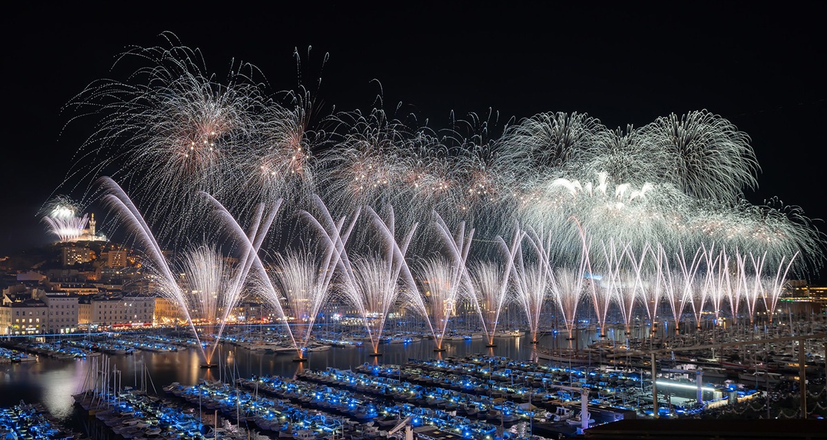 Comme pour le 14 juillet, le feu d’artifice sera tiré depuis une trentaine de pontons installés sur le bassin du Vieux Port, au plus près du public et sur un long cheminement de plusieurs centaines de mètres.