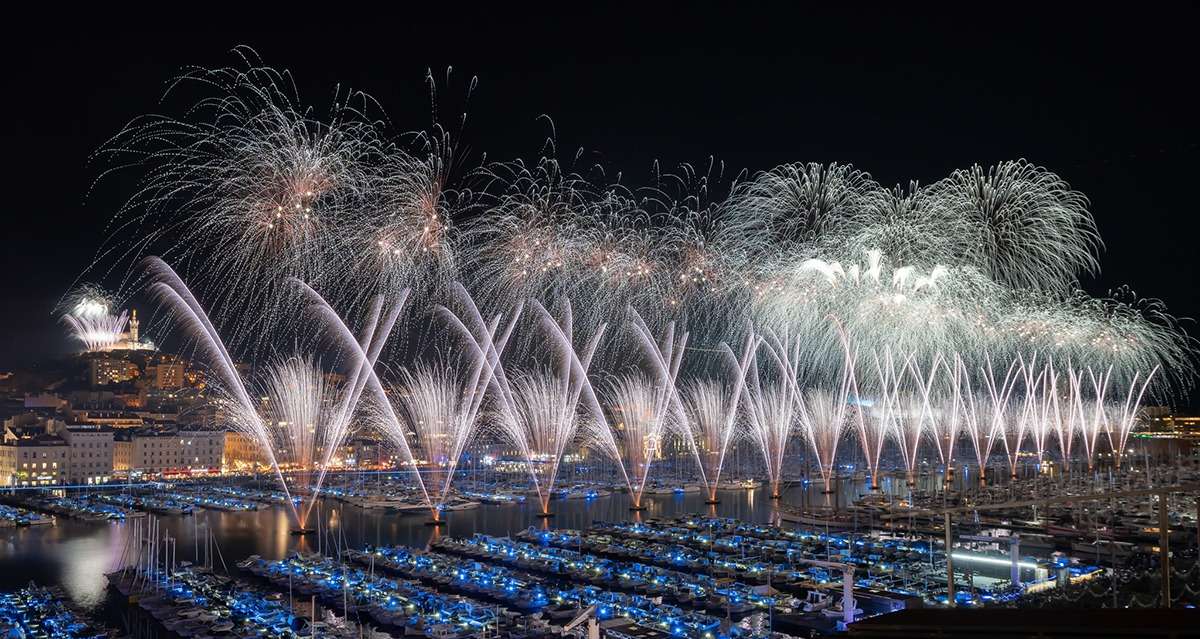 - Le feu d'artifice sera tiré, comme pour le 14 juillet, depuis le Fort d'Entrecasteaux et des barges disposées dans le bassin du Vieux Port.