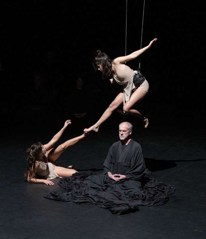 L'immobilité des moines assis en méditation dialogue continuellement avec l'action. Le public découvre l'expérience existentielle des personnages dans un parcours qui révèle progressivement des traces profondes de la pensée bouddhiste.