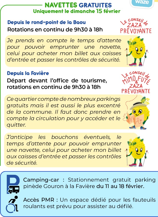Le samedi 14 février, la journée débutera avec un marché du Mimosa devant la chapelle Saint-François, où les visiteurs pourront découvrir des produits originaux à base de mimosa, tels que des parfums, des biscuits et des bougies. À 10h, un atelier autour d'une découverte olfactive sera proposé au MHAB, offrant une expérience artistique unique (tarif 4€ / dès 7 ans).
