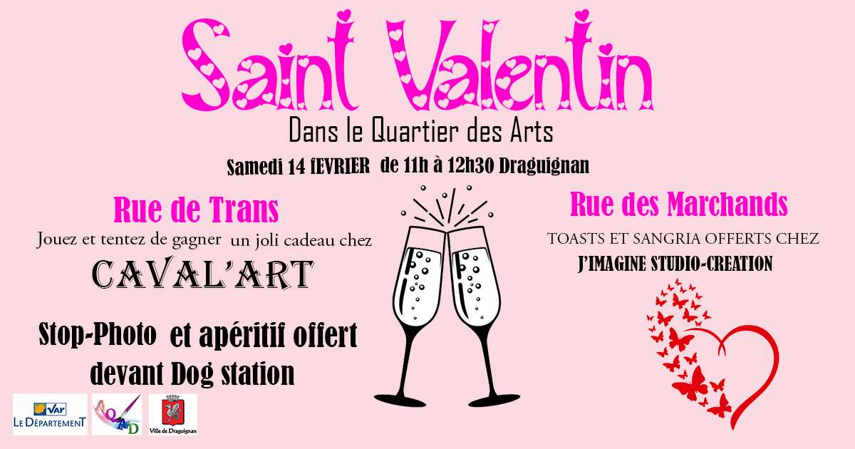 Pour la Saint Valentin, le Quartier des Arts se transforme en Quartier de l'Amour !Cadeaux, photos et apéritif offert pour tous les amoureux, alors rdv samedi 14 février de 11h à 12h30 au Quartier des Arts !