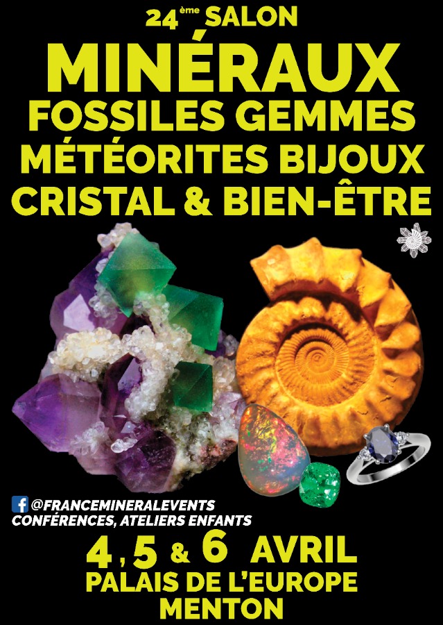 La 24ème édition du Salon des Minéraux de Menton aura lieu du 4 au 6 avril au Palais de l'Europe !