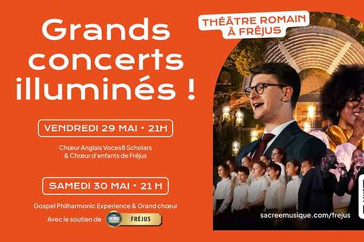 Deux concerts illuminés, une expérience inédite dans le cadre majestueux du Théâtre romain de Fréjus, vivez deux grandes soirées musicales les 29 et 30 mai.