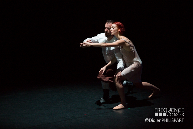 Il y a dans cette pièce une opposition implacable : d’un côté la danse fragile et libre des sorcières, et de l’autre la gravité de la scène puisque ce qui se joue là ce sont leurs vies en proies à la force de ces hommes.