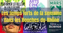Le temps d'un week-end, une rencontre avec les sciences pour toutes et tous ! Rendez-vous les 11 et 12 octobre pour expérimenter, échanger, tester ou admirer ! Découvrez les sciences dans un cadre festif et accueillant. Une programmation pour tous les âges vous attend, entre expériences, manipulations, expositions mais aussi conférences, spectacles et projections ! On vous attend nombreuses et nombreux au coeur du centre ville de Marseille.