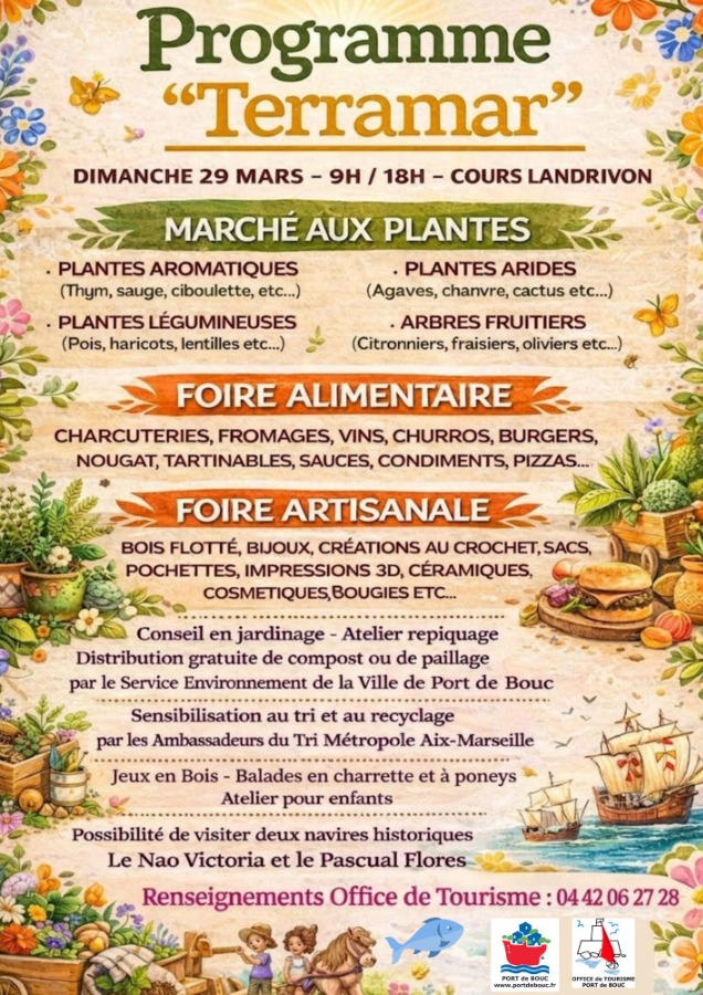 Pour fêter l’arrivée du Printemps, le Dimanche 30 Mars 2025 de 9h à 18h se déroulera, sur le Cours Landrivon à Port de Bouc, la manifestation « Terramar, de la Terre à la Mer”, marché aux plantes et foire artisanale et alimentaire.