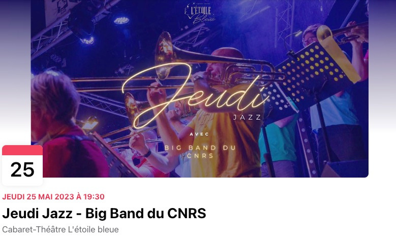 Billetterie : https://cabaretletoilebleue.seetickets.com/event/jeudi-jazz/cabaret-theatre-l-etoile-bleue/2359076