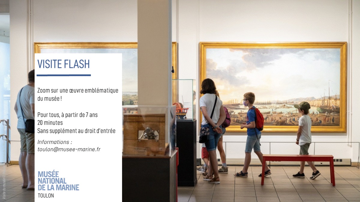 Zoom sur une œuvre emblématique du musée ! Laissez-vous porter par l’inspiration de votre médiateur, qui vous contera peut-être l’histoire du porte-avions Charles-de-Gaulle, des sous-marins nucléaires d’attaque, de la décoration navale, de la vie à bord au XVIIIème siècle, ou encore des galères et du bagne…