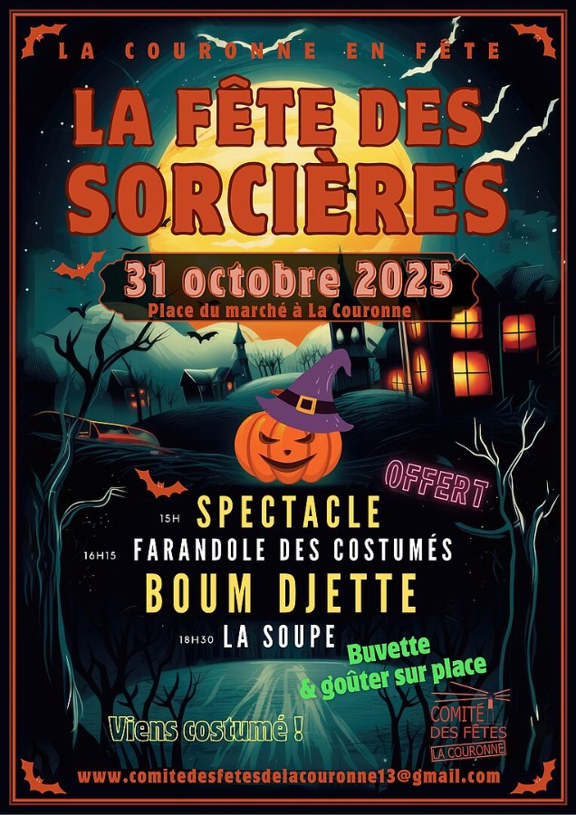 Le Comité des Fêtes de la Couronne et son équipe de bénévoles vous donnent rendez-vous vendredi 31 octobre 2025 à partir de 15 heures sur la Place du Marché pour une après-midi d’animations et de spectacle.