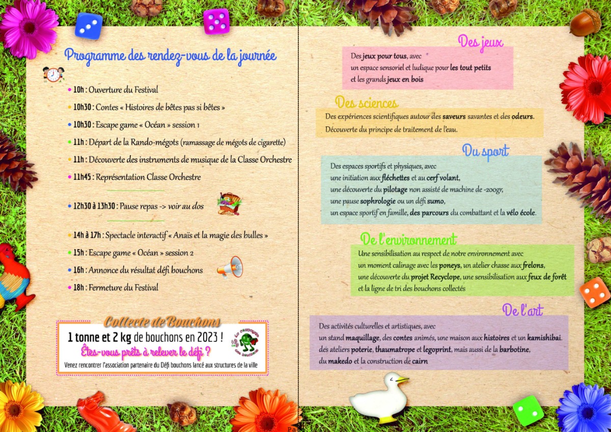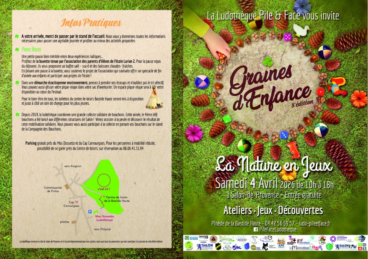 Graines d’enfance revient pour une 8ième édition pleine de jeux, d’expériences sportives, culturelles et artistiques. La ludothèque et ses partenaires vous attendent nolbreux pour vivre une belle journée au cœur de la pinéde de bastide haute. Profitez de la buvette ou portez votre pic nique pour découvrir toutes les activités proposées.